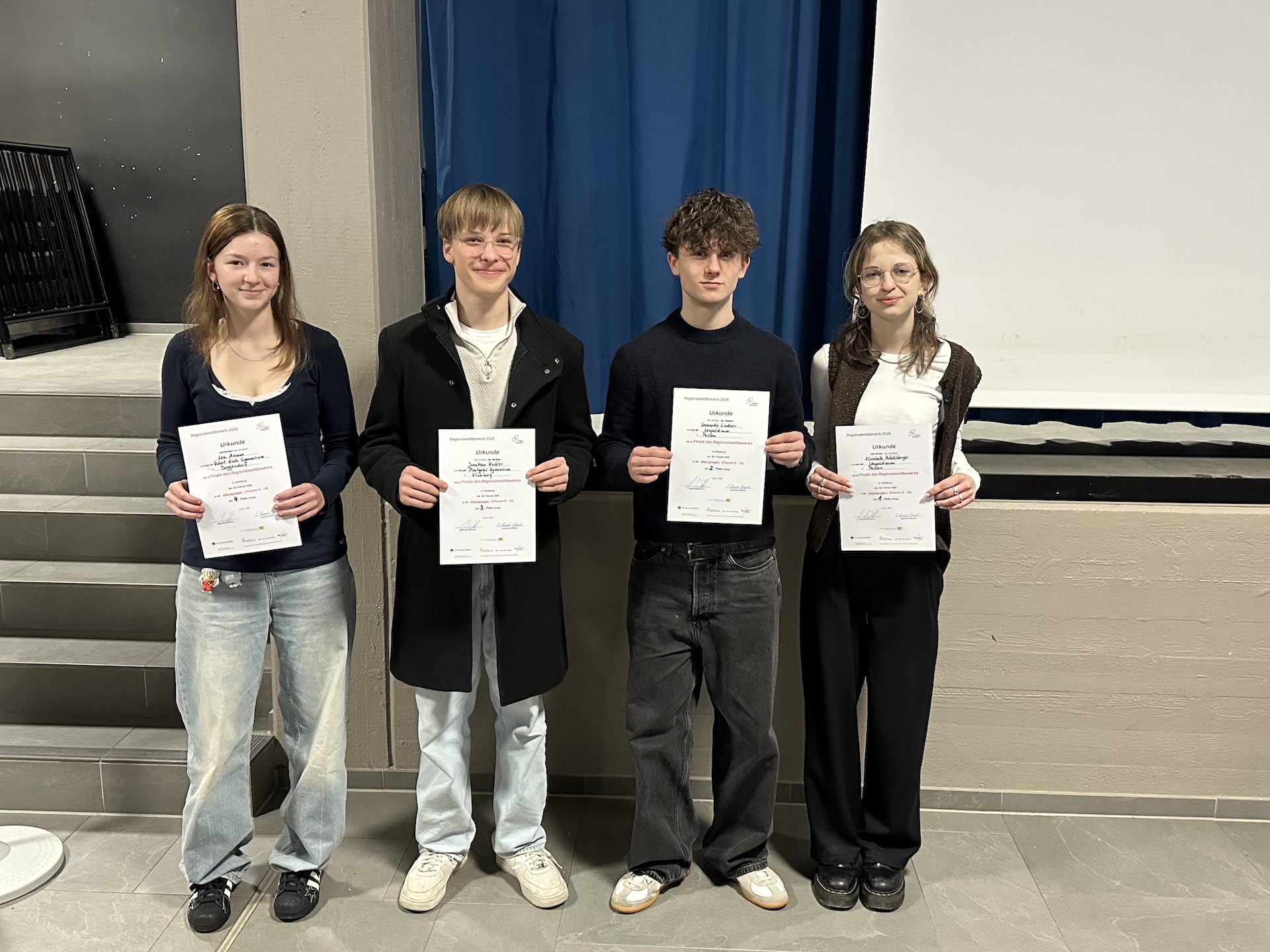 In der Altersgruppe II (10.-13. Klasse) traten Elisabeth Bauer und Simon Hoiß gegen sieben weitere Schulen an. Sie setzten sich mit den Forderungen nach einer staatlichen Förderung von Lokalzeitungen sowie dem Verbot von Wahlumfragen vor der Wahl auseinander.