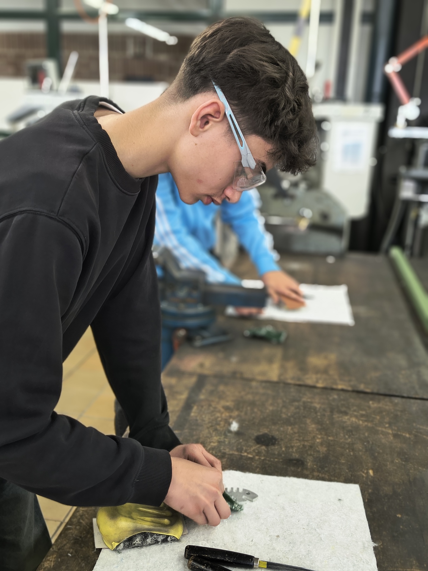 Im Rahmen des Moduls zur beruflichen Orientierung ist das MMG mit seiner gesamten 9. Jahrgangsstufe am 10. April 2025 zur Handwerkskammer Landshut gefahren. Hier hatte jeder die Möglichkeit, drei verschiedene Handwerksberufe kennenzulernen. Zur Auswahl standen Elektro, Bau, Landmaschinenmechanik, Schweißen, Orthopädietechnik und Metallbau. Da immer nur zwischen 5 und 13 Schülerinnen und Schüler in einer Gruppe waren, konnte hier neben kleinen Vorträgen zum jeweiligen Gewerk auch richtig gearbeitet werden. So wurde virtuell geschweißt, Gipsabdrücke der eigenen Füße wurden angefertigt, ein Smart-Home galt es zu programmieren oder auch ein Fisch aus Metall als Schlüsselanhänger wurde gefräst. Eine interessante Abwechslung zu einem normalen Schultag, wobei vielleicht der ein oder andere seine praktische Ader entdeckt hat.