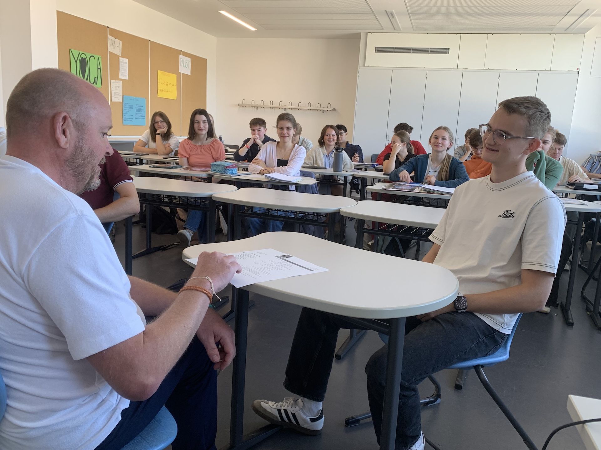 Das Schuljahr hat noch gar nicht voll Fahrt aufgenommen und schon gleich wurde am 19.09. mit der Q13 der Blick auf die Zeit nach diesem für sie letzten Schuljahr gelenkt. Um sich selbst gut auf dem zukünftigen Arbeits- und Studienmarkt bewerben zu können, wurden Auftreten und Inhalte von Vorstellungsgesprächen im Workshop unter der Leitung von Herrn Holibka (Versicherung Debeka) besprochen und simuliert. Auch die in der 9. Klasse im Rahmen des BO-Moduls erstellten Bewerbungsunterlagen wurden auf den neusten Stand gebracht und so inhaltlich optimiert. Doch was ist den Unternehmen vor Ort wirklich wichtig, wenn ein Bewerber vor Ihnen sitzt? Hierzu haben Frau Gerber (Firma Dräxlmaier) und Frau Zollner-Eller (Firma Zollner) sehr gewinnbringende Einblicke gewährt, sodass unsere diesjährigen Abiturienten nun „Fit for Job“ sind.