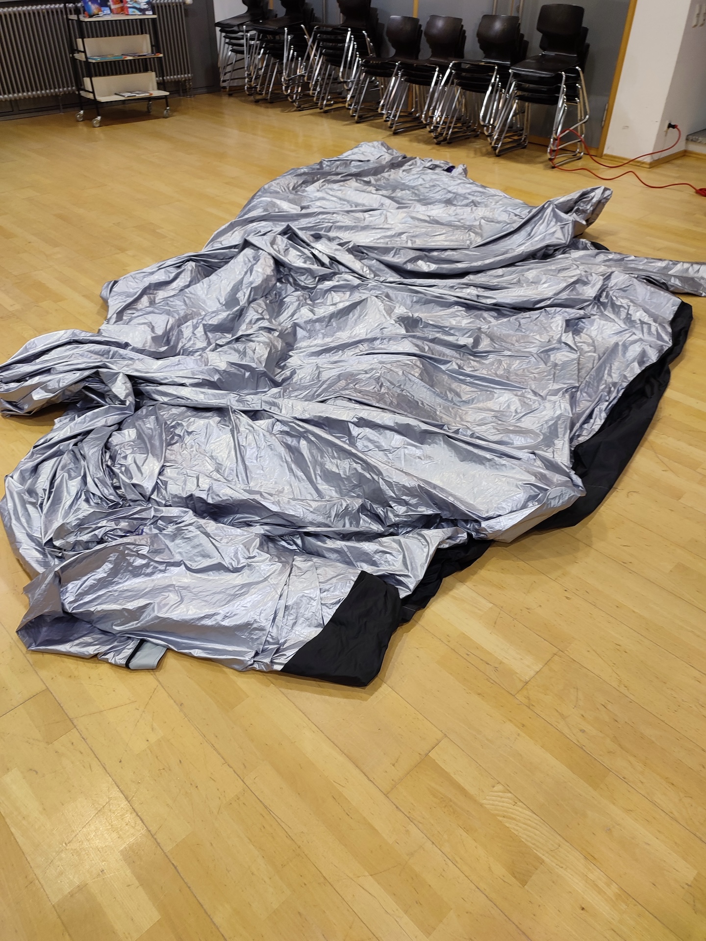 Zuerst mussten die Schüler durch einen engen Eingang steigen, um in die große Kuppel, mit einem Durchmesser von 5 Metern zu gelangen. Das aufblasbare Planetarium bietet auf einer Fläche von knapp 20 m² und einer Höhe von 3,20 m genügend Platz für eine ganze Klasse, um mithilfe eines 360°-Projektors den Nachthimmel zu betrachten und die Sternbilder kennenzulernen.
