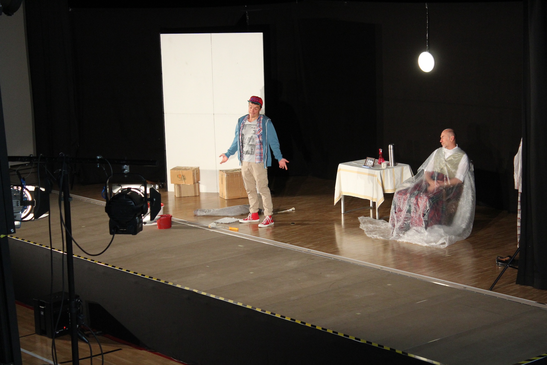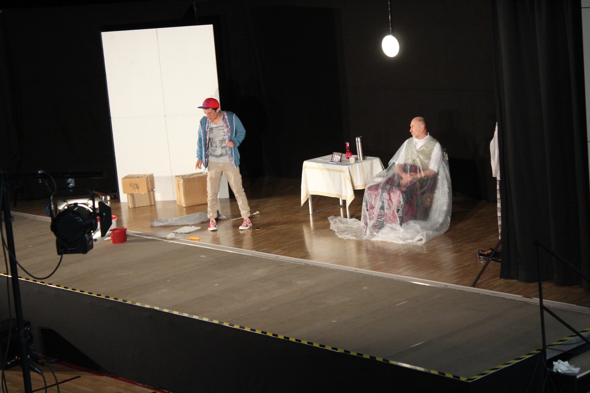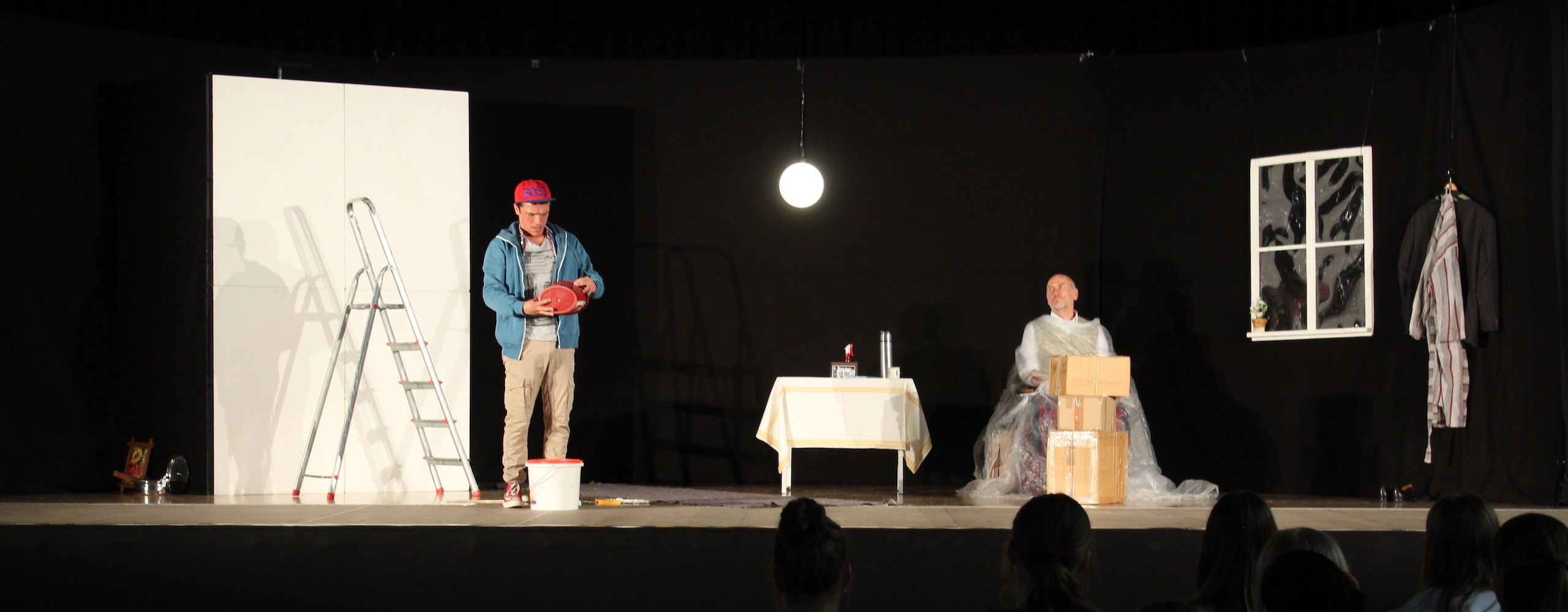 Gebannt folgten die Schülerinnen und Schüler den langen Monologen des Jugendlichen Jojo, in denen er seine Lebensgeschichte, sein Umfeld, aber auch seine Gefühlswelt offenlegt. Dass er kein gutes Bild von alten Menschen hat, zeigt sich in seinen Kraftausdrücken und in seiner Sprechweise. Er ahnt allerdings nicht, dass der alte Boxer, der sich im Raum befindet, ihn durchaus sehr gut versteht und teilweise sogar nachvollziehen kann, wovon Jojo spricht. Der ehemals ruhmreiche Boxer, der auch der „Rote Leo“ genannt wurde, ist nämlich keinesfalls so abwesend wie er tut, er hört genau zu und Jojo erkennt bald, dass er sich ein falsches Bild vom alternden Mann gemacht hat und entwickelt im Laufe des Stücks Sympathie für den früheren Boxer. Und als dieser ihm auch noch den Wert von Charakter verdeutlicht, indem er ihm erklärt: „Du hast für einen anderen eine Strafe auf dich genommen, das ist Charakter. Das ist, was man tut für einen Freund.“, entwickelt sich sogar eine Freundschaft. Aus der Gegensätzlichkeit zweier Einzelkämpfer nähern sich die beiden einander an und lernen voneinander. Eine sympathische Entwicklung im Stück, die die Zuhörerinnen und Zuhörer in Bann zieht.