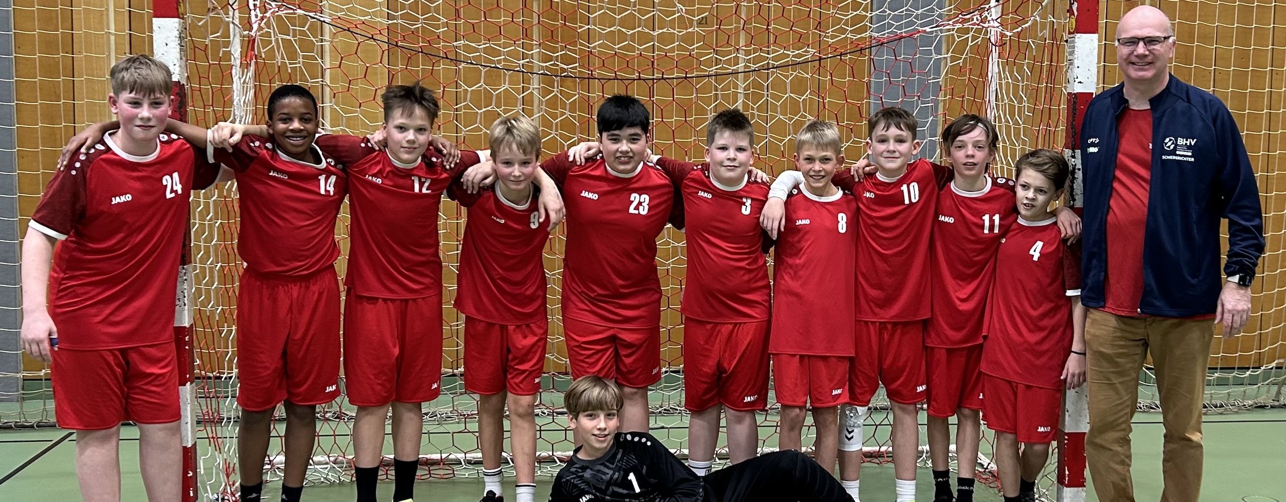 Am Donnerstag fuhr die Jungenmannschaft der WK IV (2013 -16) zum niederbayerischen Bezirksfinale nach Landshut. Nach der Gruppenauslosung mussten sie dann sofort wie so oft gegen das Maristen-Gymnasium aus Furth antreten. Nach einem etwas holprigen Start übernahmen sie das Kommando und zogen kontinuierlich davon. Auch fleißiges Wechseln brachten den 14:7 Sieg nicht mehr in Gefahr. Somit war auch klar, dass das zweite Gruppenspiel gegen das Tassilo-Gymnasium Simbach den Finaleinzug entscheiden würde. Die Mannschaft des MMG übernahm gleich das Ruder und lag zu Beginn der Partie vorne. Allerdings gelang es den zwei stärksten Simbachern zunehmend, sich durchzusetzen. Über eine längere Zeit war die Partie dann immer wieder ausgeglichen bevor das MMG 90 Sekunden vor Schluss erstmals beim 10:12 mit zwei Toren zurücklag. Sie konnten in der nun gespielten offenen Manndeckung den Ball erobern, ließen diese Chance aber ungenutzt. Eine zweite Balleroberung führte dann zum 11:12. Und wenige Sekunden vor Schluss eroberten sie erneut den Ball, spielten die Wurfchance trotz des Zeitdrucks gut heraus, vergaben aber die sich bietende Ausgleichsmöglichkeit. Letztendlich war es genau dieses eine Tor das zum Finaleinzug fehlte. Im kleinen Finale um Platz Drei trafen sie dann auf das Gabelsberger-Gymnasium aus Mainburg. Schnell setzten sich die Vilsbiburger ab und konnten somit die knapp bemessene Spielzeit von 2x 10 Minuten nutzen, um jedem Spieler entsprechende Spielanteile zu geben. Am Spielende hatten sich die MMGler mit einem ungefährdeten 12:8 Erfolg die Bronzemedaille gesichert. Aus der geschlossenen Mannschaftsleistung ragten Obinna Igbokwe und Leopold Lermer ein klein wenig heraus. Aber auch Simon Schorr, Maciej Szymkowiak, Ferdinand Zollner, Milan Schmittat und Vinzenz Hertle trugen maßgeblich zum Erfolg bei. Die wahrscheinlich ausgeglichenste Teamleistung des Turniers wurde durch Elias Schmid, Michael Schäffler, Josef Wimmer und Valentin Ostner abgerundet. Mannschaft und Schule können wirklich stolz darauf sein wie sie sich präsentiert haben.