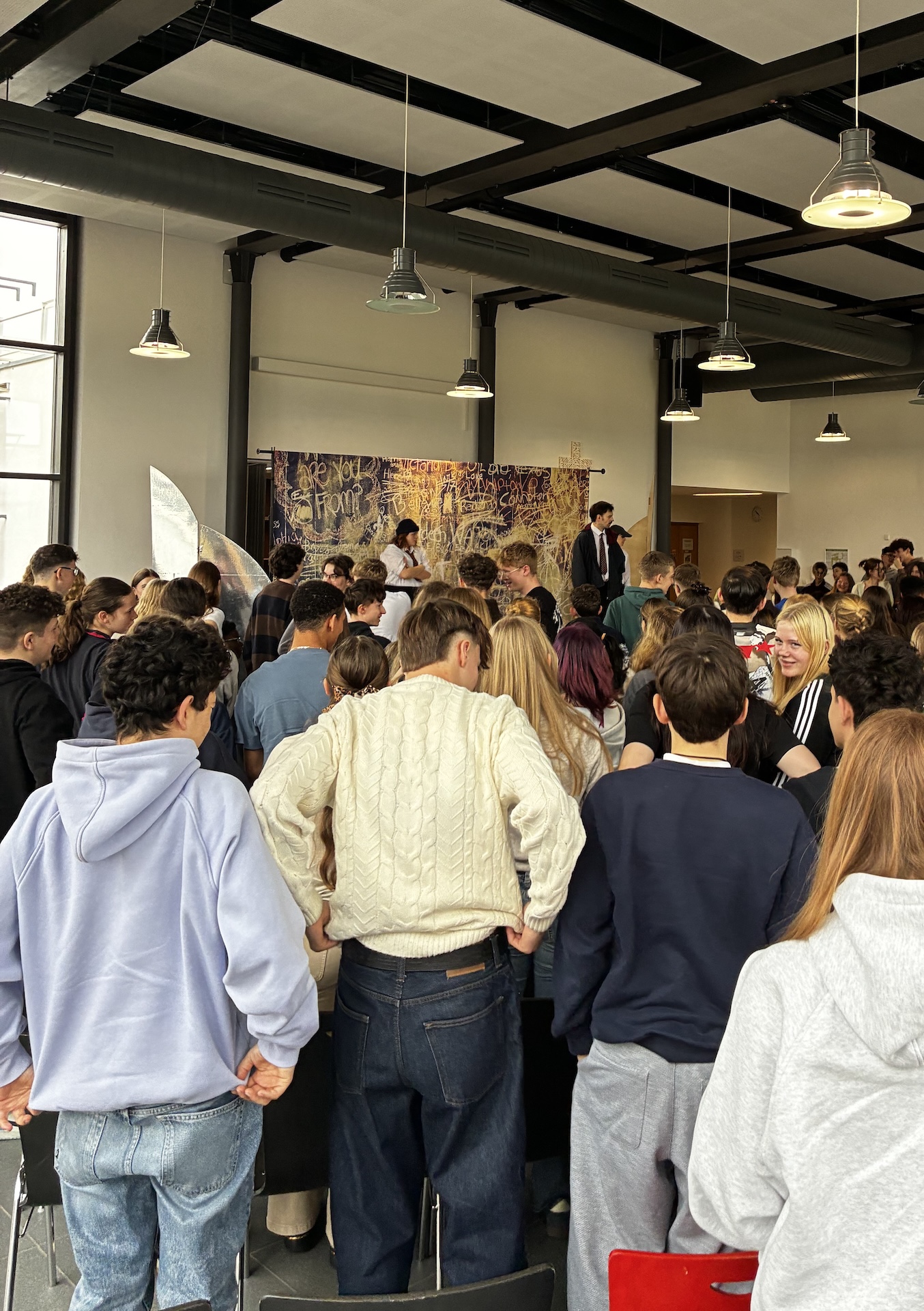 Das Stück "Sticks and Stones" griff das aktuelle und wichtige Thema Mobbing auf. Die eindringliche Inszenierung rüttelte viele Schülerinnen und Schüler sichtbar auf – so sehr, dass sich die meisten am Ende sogar spontan in das Geschehen einbrachten und gemeinsam Zeichen gegen das Mobbing setzten.