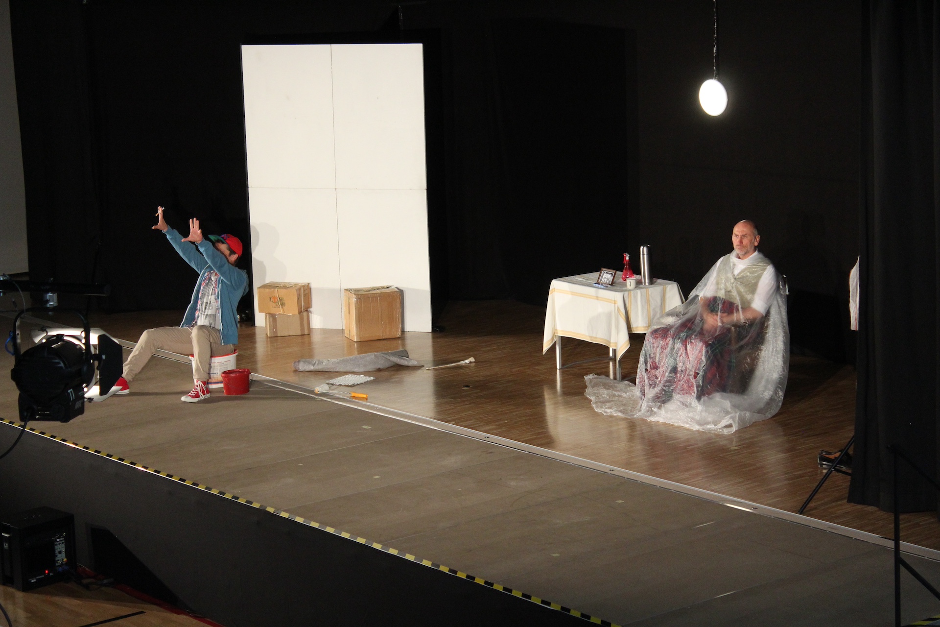 Gebannt folgten die Schülerinnen und Schüler den langen Monologen des Jugendlichen Jojo, in denen er seine Lebensgeschichte, sein Umfeld, aber auch seine Gefühlswelt offenlegt. Dass er kein gutes Bild von alten Menschen hat, zeigt sich in seinen Kraftausdrücken und in seiner Sprechweise. Er ahnt allerdings nicht, dass der alte Boxer, der sich im Raum befindet, ihn durchaus sehr gut versteht und teilweise sogar nachvollziehen kann, wovon Jojo spricht. Der ehemals ruhmreiche Boxer, der auch der „Rote Leo“ genannt wurde, ist nämlich keinesfalls so abwesend wie er tut, er hört genau zu und Jojo erkennt bald, dass er sich ein falsches Bild vom alternden Mann gemacht hat und entwickelt im Laufe des Stücks Sympathie für den früheren Boxer. Und als dieser ihm auch noch den Wert von Charakter verdeutlicht, indem er ihm erklärt: „Du hast für einen anderen eine Strafe auf dich genommen, das ist Charakter. Das ist, was man tut für einen Freund.“, entwickelt sich sogar eine Freundschaft. Aus der Gegensätzlichkeit zweier Einzelkämpfer nähern sich die beiden einander an und lernen voneinander. Eine sympathische Entwicklung im Stück, die die Zuhörerinnen und Zuhörer in Bann zieht.