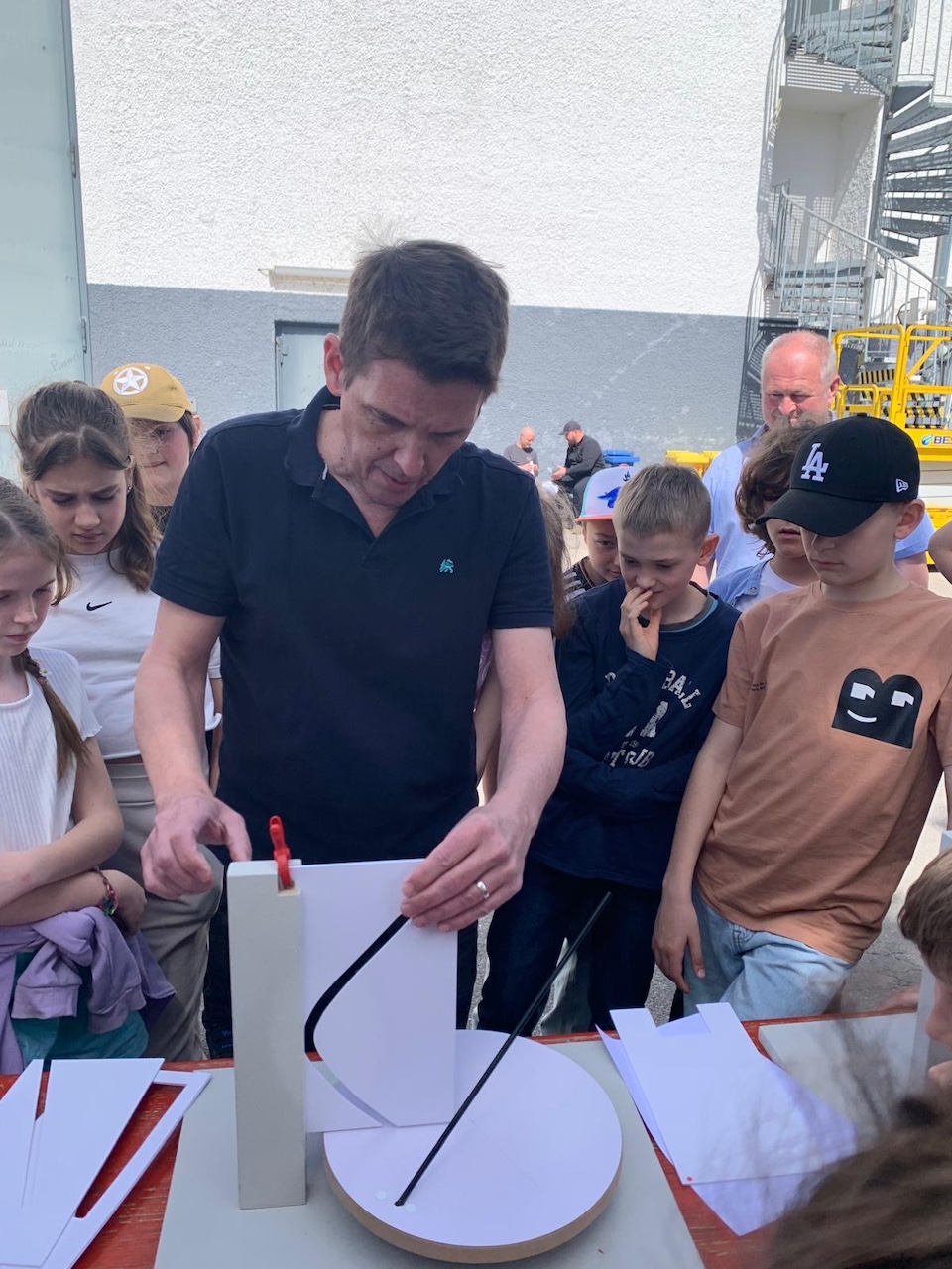 Riesige Hallen voller Möbel, Lampen, Geschirr und Dekorationen in vielen bunten Farben bestaunten die Jugendlichen auf dem Weg über das Gelände der Bavaria Filmstadt. Bei einer Führung erhielten die Kinder Einblicke in die Arbeit eines Requisiteurs. Seine Aufgaben bestehen nicht nur darin, die zahlreichen Utensilien, Accessoires und Werkzeuge, die für die Produktion einer Fernsehsendung benötigt werden, bereit zu halten, sondern auch Experimente für spannende Wissenssendungen vorzubereiten. Voller Begeisterung und Eifer verfolgten die Schülerinnen und Schüler der Klassen 5a und 5b die Versuche, die Herr Brendel extra für die Kinder arrangiert hatte und sie ihnen vorführte.
