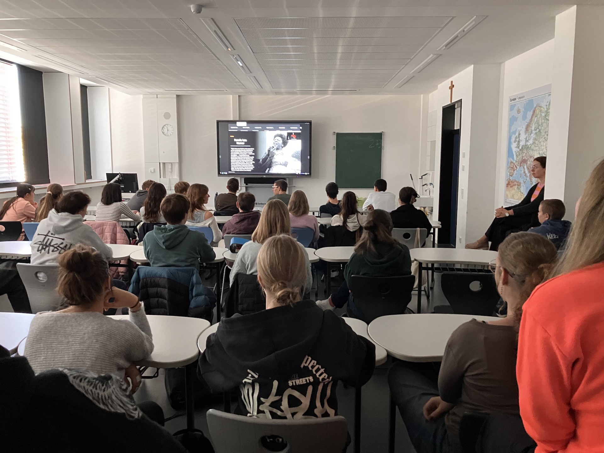 Am 16.10.24 durften sich alle Q12-Schüler in einer Videokonferenz von den Merkmalen einer Vorlesung überzeugen, wie sie an der Universität zu erwarten sind. Dr. Grit Grigoleit-Richter (Universität Passau) referierte über die Geschichte des Wahlrechts in den USA als auch die Verweigerung desselbigen für große Teile der amerikanischen Bevölkerung. Organisiert wurde das Event vom Amerikahaus in München.